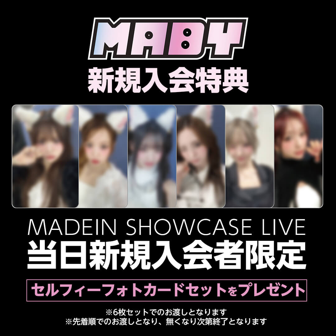 「MADEIN SHOWCASE LIVE」会場にて、MADEIN OFFICIAL FANCLUB 「MABY JAPAN」新規入会の受付が決定いたしました!